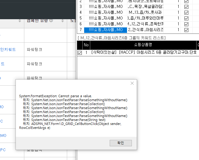 쇼핑검색 키워드 입찰 프로그램 사용하면서 쇼핑검색어 등록시 일부 그룹명이